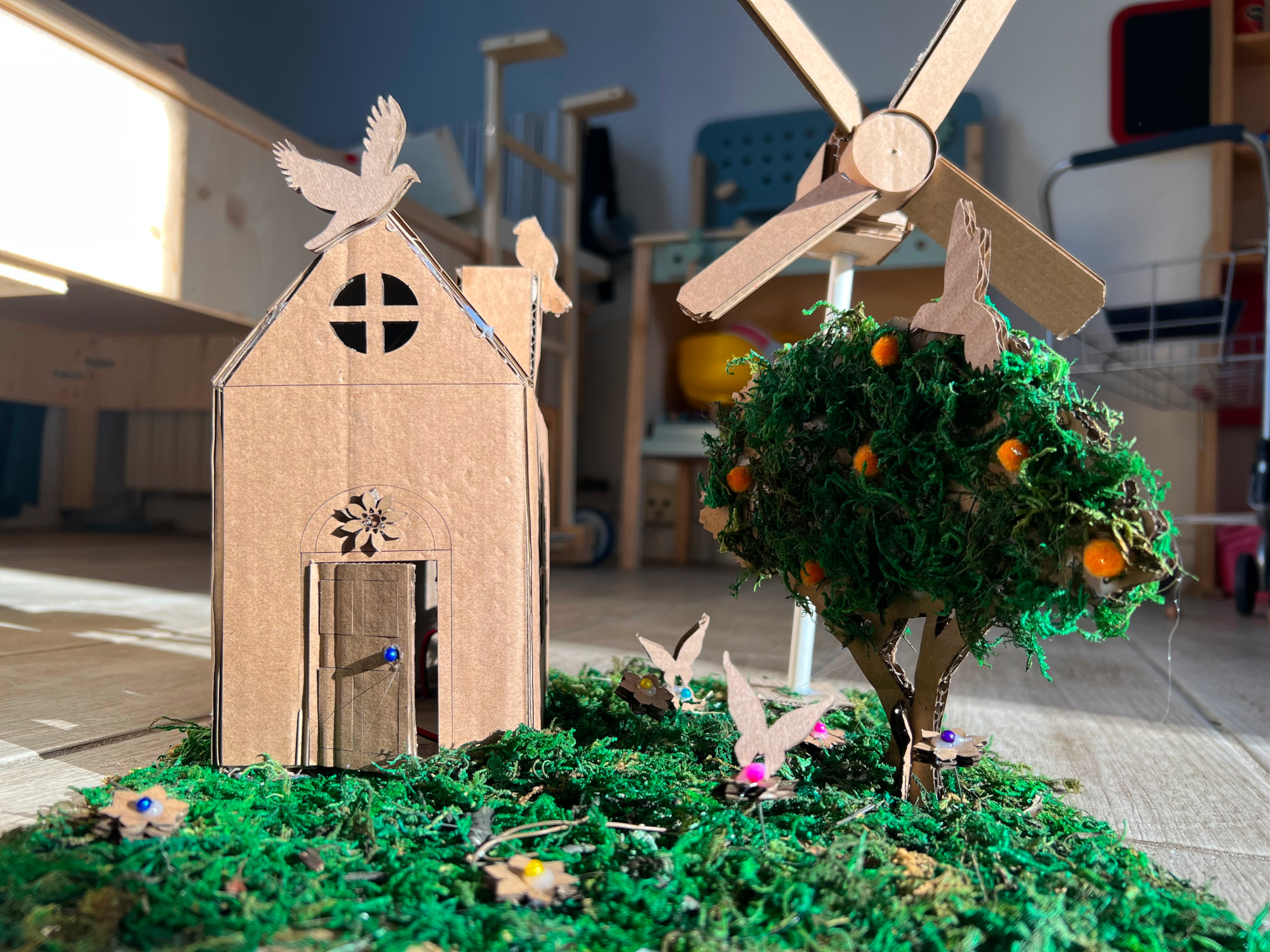 (i) construire une petite maison miniature avec du matériel de récupération